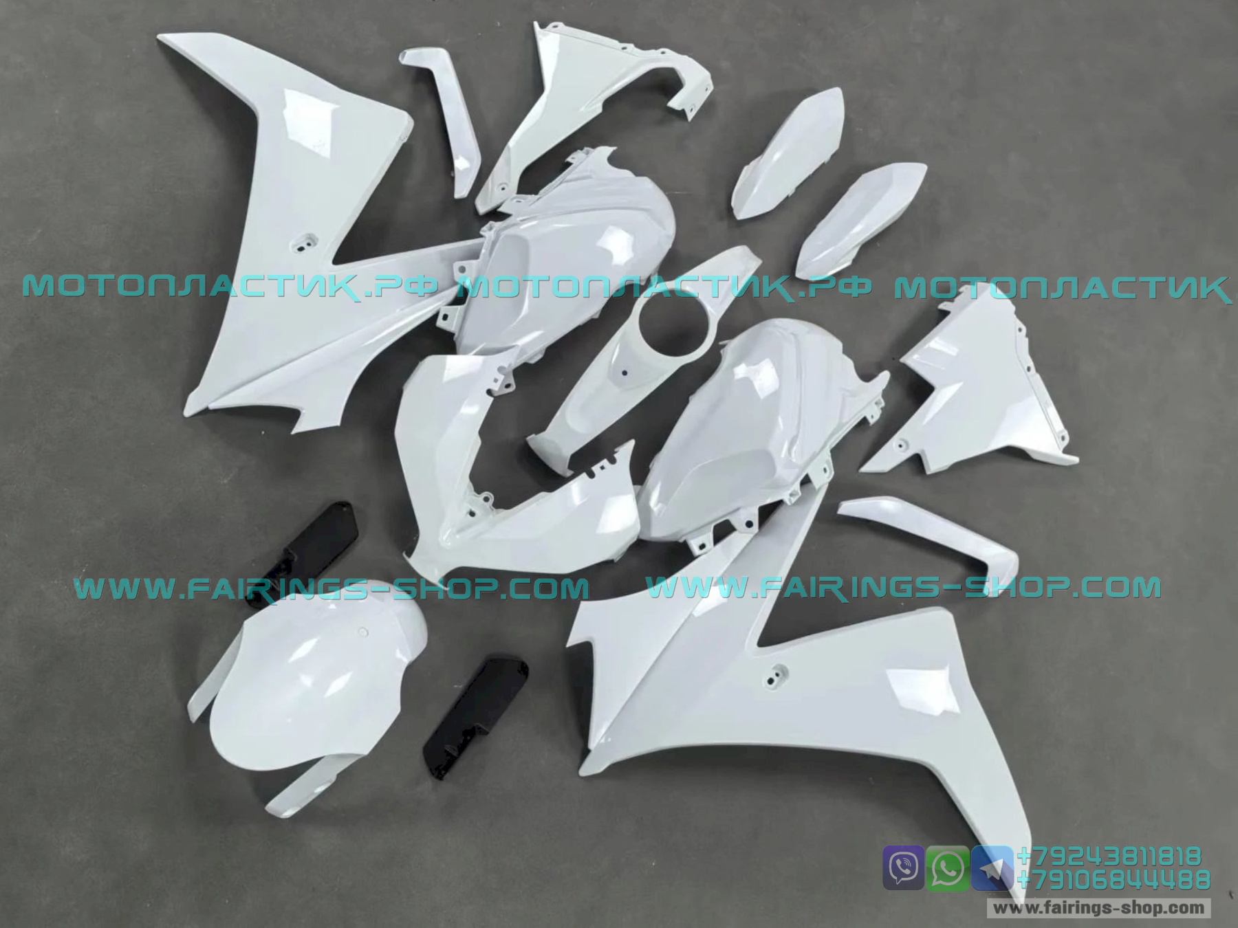 • ㋛ Комплект пластика готов к установке на мотоцикл. На деталях обвеса присутствуют все необходимые отверстия и резьбы.